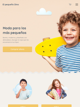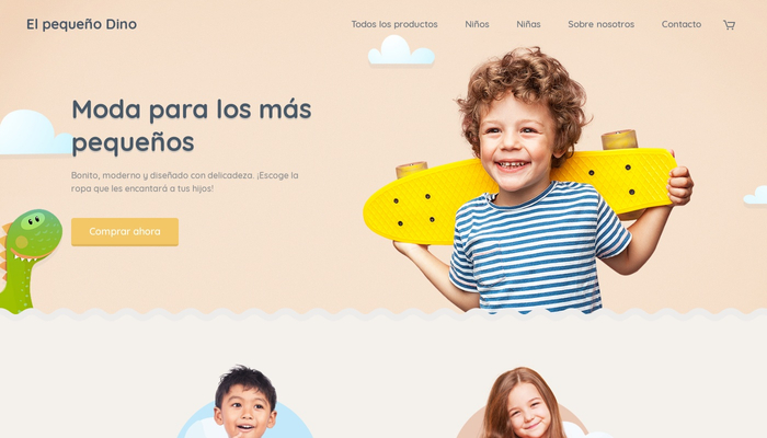 ¡Vende moda para niños/as y muestra tu trabajo online! La plantilla perfecta para tu tienda de ropa y accesorios. La posibilidad de añadir productos populares, su diseño atractivo y el sencillo proceso de compra, te ayudarán a tener el éxito que buscas.